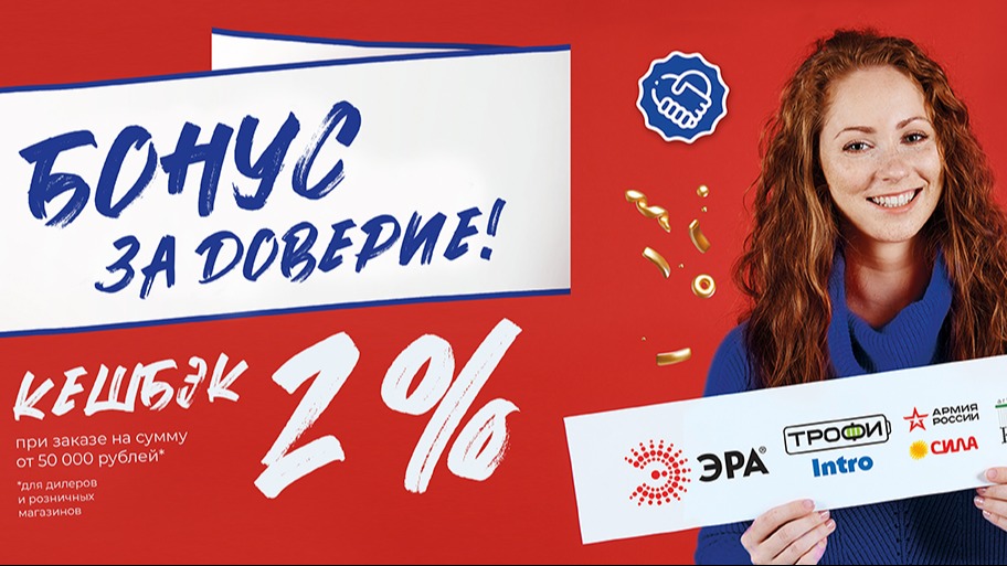 Акционная продукция: все товары брендов ЭРА, ТРОФИ, СИЛА, INTRO, Армия России, Rivoli.