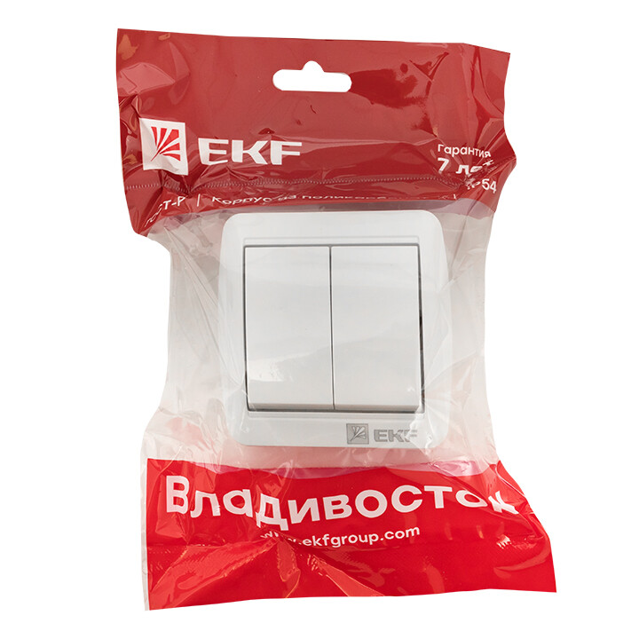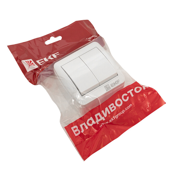 Выключатель двухклавишный EKF EQR16-023-30-54 "Владивосток" (10 А, IP54) открытой установки, белый