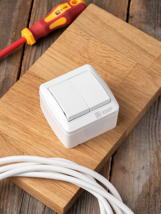 Электроустановочные изделия EKF серии "Владивосток" открытой установки - это решение для открытой проводки, которое позволяет организовать электроснабжение в условиях высокой влажности.
