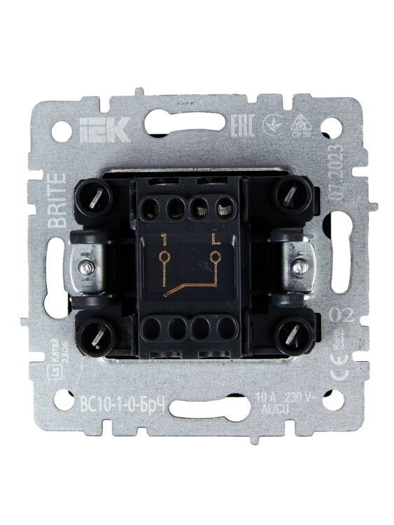 Выключатель IEK серии электроустановочных изделий Brite предназначен для скрытой установки внутри помещений.