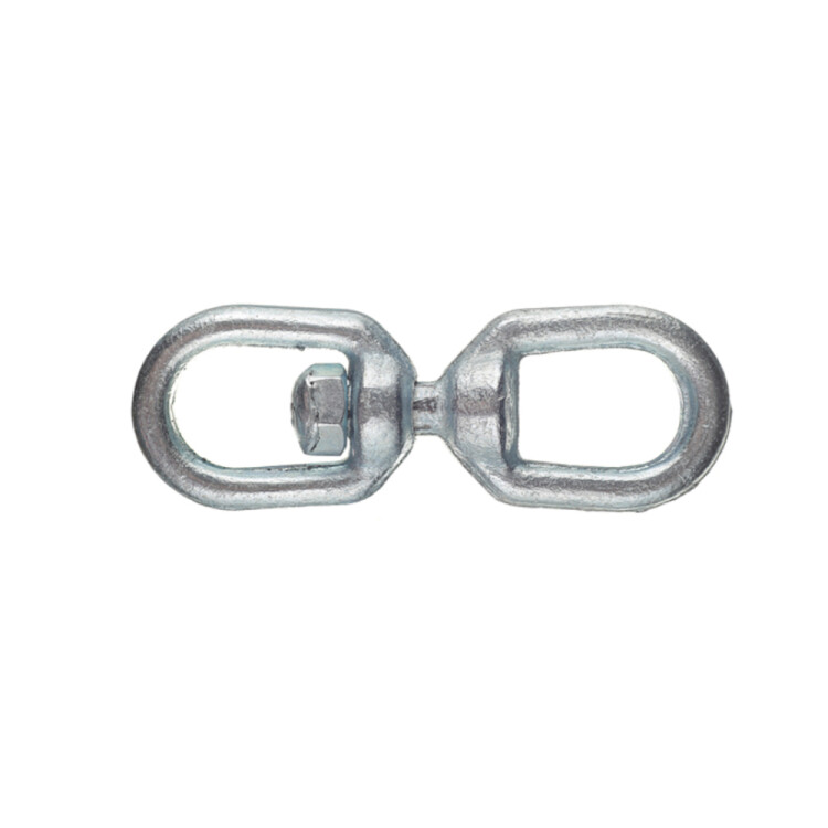 Особенности: исключает передачу крутящего момента с одного присоединенного элемента на другой, тем самым устраняя перекручивание и/или напряжение внутри цепи, троса, каната. Предотвращает образование петель. Вертлюг петля-петля не имеет разборных частей, поэтому для его соединения с другим такелажным элементом необходим карабин или соединительное звено.