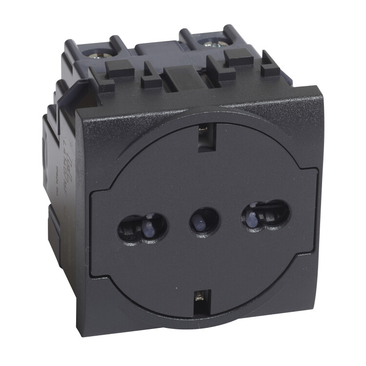 Бтичино Ливинг Лайт антрацит розетка скрытая 1-мест шторки IP20 немецкий/итальянский стандарт