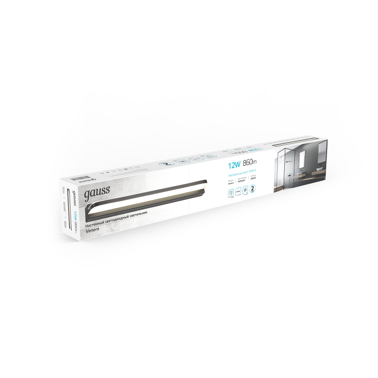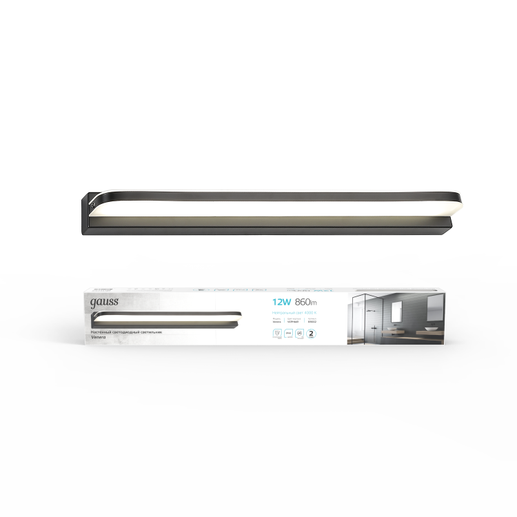 Светильник настенный свд 12Вт 4000К 860лм черный Gauss