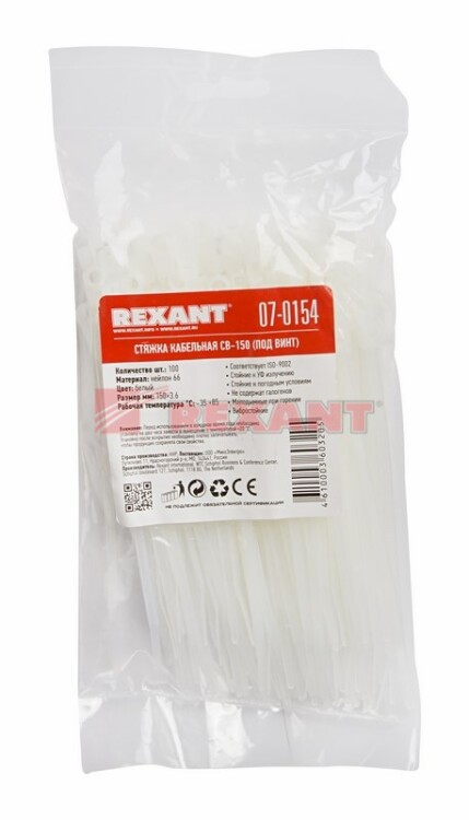Хомут 150*3,6мм нейлон белый под винт Rexant 100шт