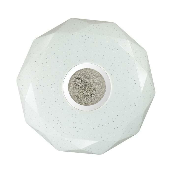 Светильник 2057/ML линии PRISA состоит из металлического основания (базы) и пластикового рассеивателя. Материал рассеивателя - высококачественный акрил белого цвета с глянцевой поверхностью, обеспечивающий светильнику равномерное рассеивание и хорошее светопропускание. Форма плафона: круглая, декорирована рельефным орнаментом по краям, центральной вставкой с эффектом переливания и кантом цвета хром, а также рисунком в виде прозрачных точек, которые придают включенному светильнику красивый эффект "звездного мерцания". Степень защиты IP43 позволяет использовать светильник в определенных зонах влажных помещений. В комплект входит LED модуль с линзами, мощностью 160Вт, которая соответствует лампе накаливания 1150Вт. А также пульт ДУ, с помощью которого осуществляется плавное изменение цветовой температуры 3000-6500К, изменение яркости, переход в режим переключения холодного/белого/теплого/ночного света. Светильник имеет функцию "память" и возможность управления группой светильников. Степень защиты IP43, класс защиты 1, гарантия (месяцы) 30, дополнительные параметры Беспроводной пульт ДУ, тип крепления накладной