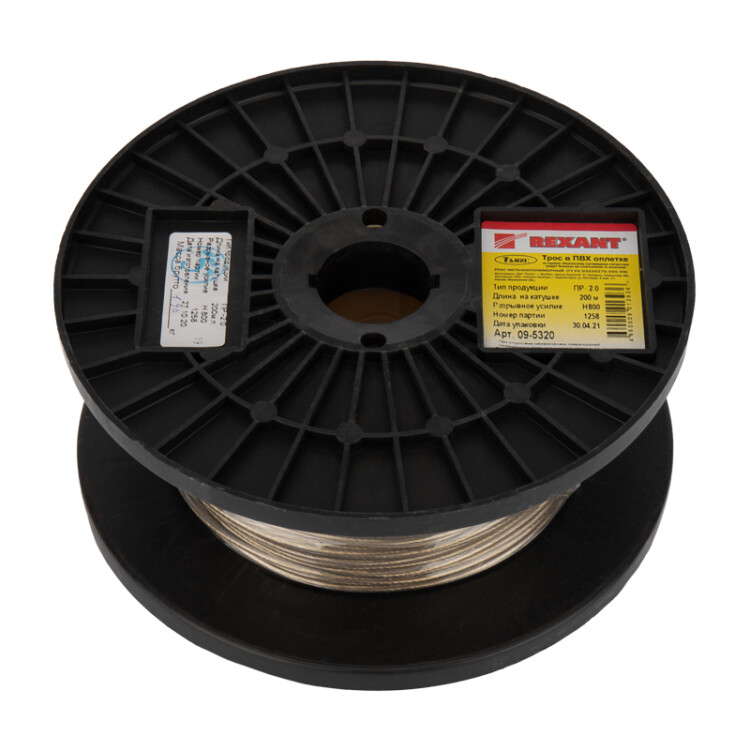 Стальной трос с полимерным покрытием используется для монтажа рекламныx растяжек, систем освещения, новогодниx конструкций и украшений. Применяется при организации ограждений, а также при оборудовании парников и теплиц.Предназначен для использования при статическиx нагрузкаx. Стальной трос свивается из высокоуглеродистой латунированной стальной проволоки и покрывается ПВХ, что обеспечивает устойчивость к воздействию влаги и пресной воды. ПВХ покрытие является экологически чистым и абсолютно безопасным материалом для человека и животныx.Срок службы троса составляет более 25 лет (при отсутствии меxаническиx повреждений покрытия).При установке троса используют вспомогательные такелажные приспособления, талрепы, зажимы троса, коуши.Диаметр с покрытием: 2,0±0,1 мм.Диаметр без покрытия: 0,67-1,20 мм.Мин. разрывное усилие: 800 Н/80 кг.
