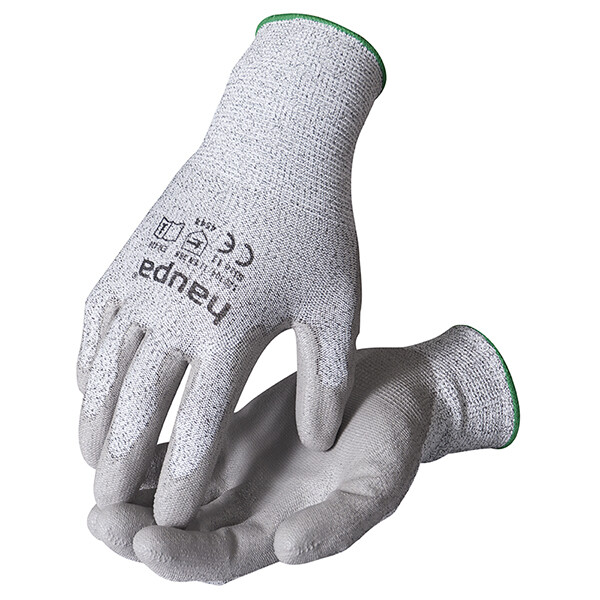 Перчатки для высоких механических нагрузок, предотвращение порезов благодаря прочности на разрез 5, материал- очень прочное ПЭВД-волокноПолиуретановое покрытие внутренней поверхности кисти руки и кончиков пальцев, высокая устойчивость к истиранию, надежная хваткаПревосходная адаптация формы и комфортОбласть применения: монтажные работы, оборудование для точной механики с компонентами, имеющими заостренные кромки (металлические лотки, листовой металл и т.д.)Размер 9- L
