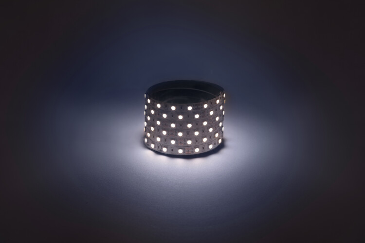 В составе комплекта: LED лента на двустороннем скотче, источник питания, коннекторы. Рабочее напряжение ленты составляет 12В, а мощность равна 14,4 Вт/м. Светодиодная лента обладает световым потоком 400 Лм/м, и цветом свечения - холодный белый (6500 K)