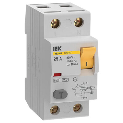 Выключатель дифференциальный (УЗО) Karat ВД3-63 2Р 25А 30мА 6кА тип AC IEK