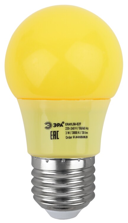 Декоративная светодиодная лампа ЭРА "Белт-лайт" с цоколем Е27 и колбой груша (А50) жёлтого цвета. Мощность - 3 Вт. Идеально подходит для использования в гирлянде-конструкторе ЭРА "Белт-лайт", дающей возможность самостоятельного дизайна и монтажа праздничной иллюминации. В составе гирлянды-конструктора позволяет создавать уникальное праздничное освещение по индивидуальным параметрам и для конкретных задач. Вы сами выбираете длину подсветки, цвет ламп и расстояние между источниками света. Это идеальное решение для оформления витрин, общественных пространств. Другие элементы гирлянды-конструктора: патрон Б0049176, кабель Б0049175, набор для подключения (шнур питания с вилкой + коннектор) Б0049180, коннектор Б0049179, заглушка Б0049181, заглушка с крюком Б0049182. В ассортименте ЭРА LED-лампы "Белт-лайт" E27 разных цветов, в том числе прозрачные и матовые белые. Колбы изготовлены из лёгкого ударопрочного пластика, такие лампы удобно транспортировать, использовать и хранить. Цоколь - из алюминия. Лампы ЭРА "Белт-лайт" универсальны: подходят к любому светотехническому прибору с патроном для Е27. Создают необычное цветное свечение определённого оттенка. Помогают воплощать в жизнь смелые дизайнерские идеи.