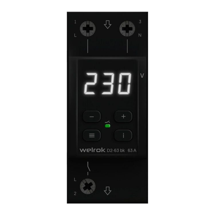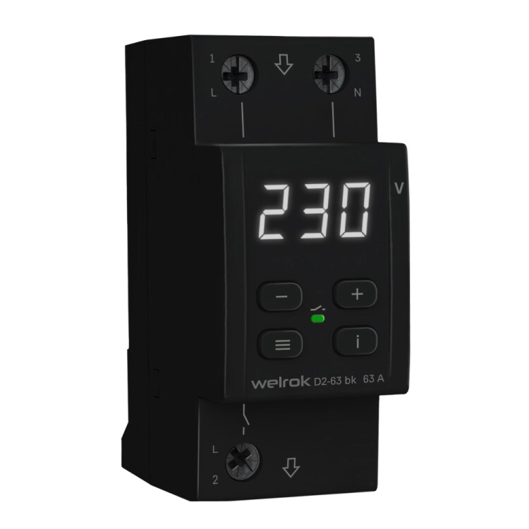 Реле напряжения Welrok D2 bk защищает оборудование от скачков и провалов напряжения, обрыва нулевого провода. Реле отключает нагрузку, если сетевое напряжение выходит за установленные пределы. Когда значение напряжения вернется в норму, нагрузка будет автоматически включена обратно.
