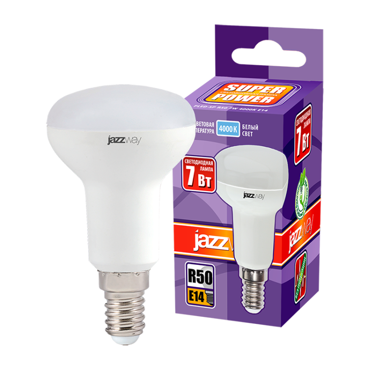 Лампа R50 свд E14 7Вт 4000К 540лм рефлектор матовая Jazzway