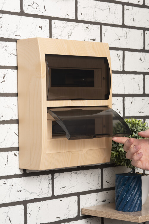 Щиты распределительные пластиковые ЩРн-П, ЩРв-П EKF PROxima предназначены для установки модульной аппаратуры: автоматических выключателей, УЗО, таймеров, устройств управления и т.д. Используются для электромонтажа в жилых, административных, торговых помещениях. Вертикальное открывание дверцы позволяет устанавливать бокс независимо от положения соседних стен. Электрощиты изготовлены из прочного ABS-пластика. Текстура дерева даёт возможность маскировки электротехнических щитов и соединений в деревянных дома.