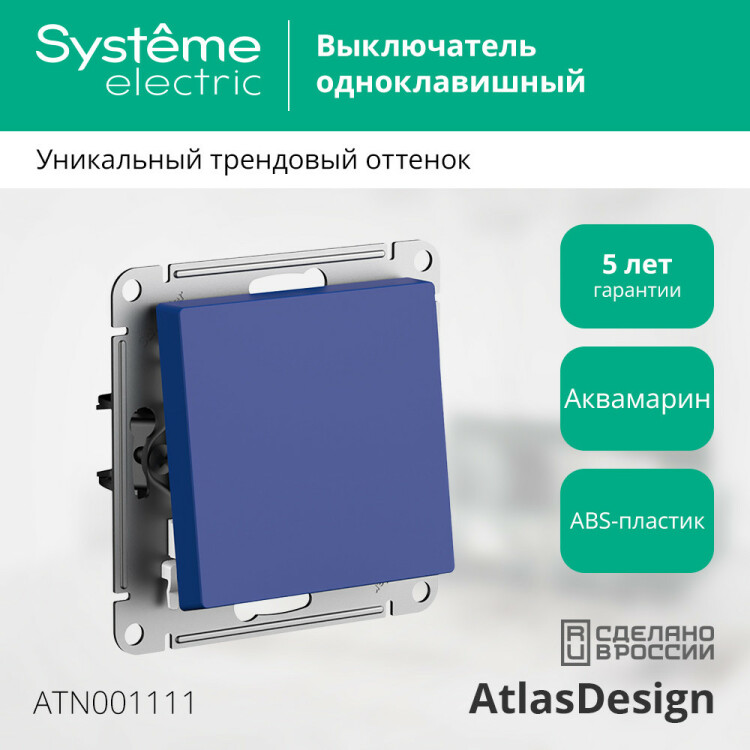 Выключатель одноклавишный Systeme Electric ATN001111 AtlasDesign (10 АХ) скрытой установки, аквамарин