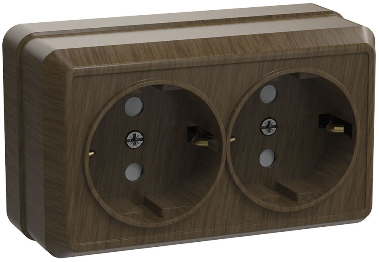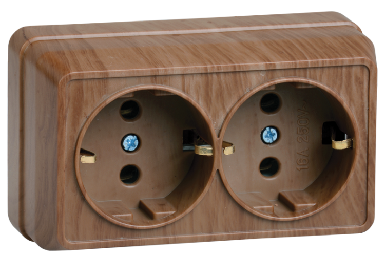 Октава дуб розетка открытая 2-мест заземление IP20