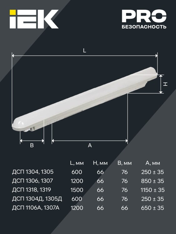 Светильник ДСП 36Вт 6500К 3600лм 1200мм матовый IP65 ДСП1307 IEK