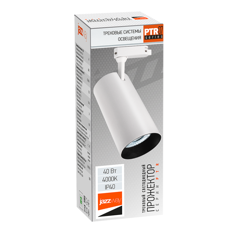 Светильник на трек однофазный свд 40Вт 4000К 3800лм белый Jazzway угол 24°