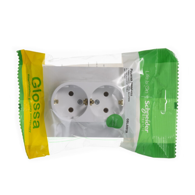 Розетка двухместная Systeme Electric GSL000124 Glossa (16 А) с заземлением, в сборе, белый