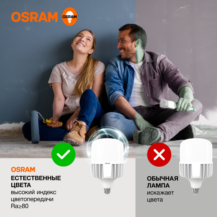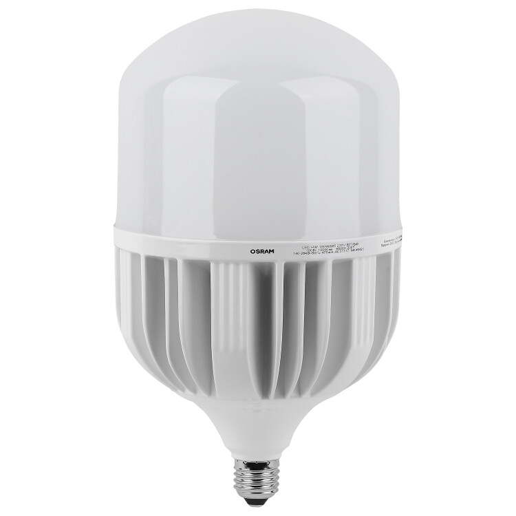 Лампа светодиодная OSRAM LED HW T, 8000лм, 80Вт (замена 800Вт), 4000К (нейтральный белый свет). Цоколь E27/E40, колба T, угол пучка 200°. Исполнение колбы матовое, алюминий. Напряжение питания 140-265В. Особенности: PF≥0,9. Товар сертифицирован.