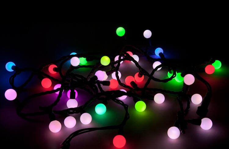 Крупные, необычайно яркие шарики видны издалека не только в темноте, но и при дневном освещении, что делает эту гирлянду незаменимой для украшения больших уличных елей, фасадов зданий, торговых залов магазинов.