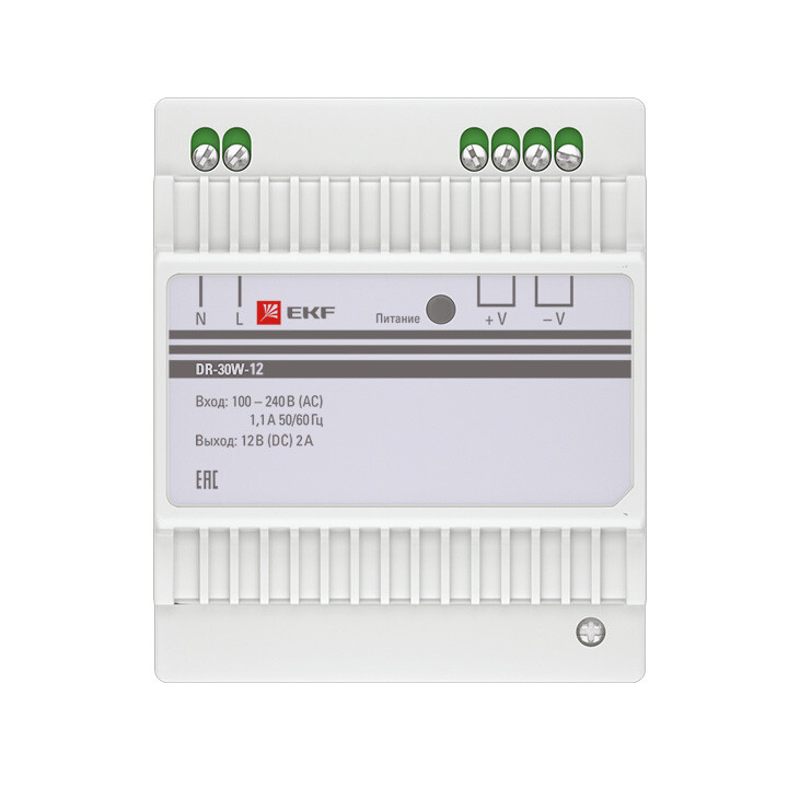 Блоки питания серии DR напряжениями 5/12/24/48 В, EKF устанавливаются на DIN рейку и предназначены для преобразования входного переменного напряжения 100-240 В в постоянное стабилизированное напряжение 5,12,24 или 48 Вольт.