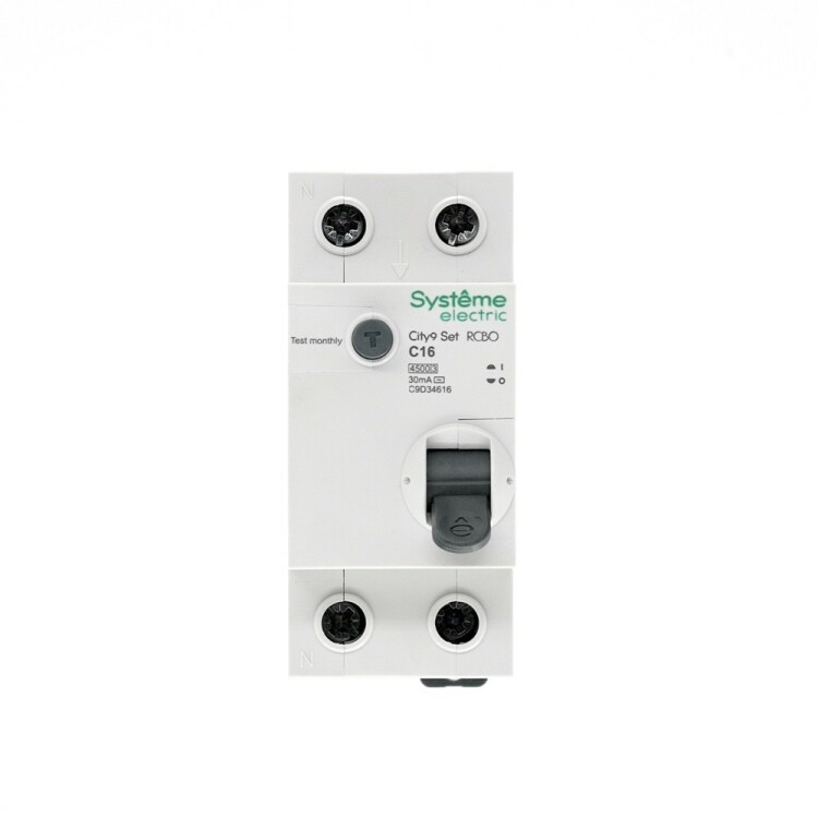 Автоматические выключатели дифференциального тока (АВДТ) серии City9 Set Systeme Electric,1P+N, номинальный ток 16 А, характеристика С, Icn = 4.5 кА, ток утечки 30 мА, тип АС. АВДТ применяется в электрических сетях напряжением 230В. Предназначен для защиты сети от перегрузок, людей от поражения электрическим током и токов короткого замыкания. Уставка по току утечки 30 мА обеспечивает гарантированную защиту людей при прямом прикосновении. Кнопка тест обеспечивает проверку работоспособности аппарата. Крепление на DIN-рейку шириной 35 мм. Безопасные клеммы (ранее Schneider Electric Easy9 EZ9D34616).