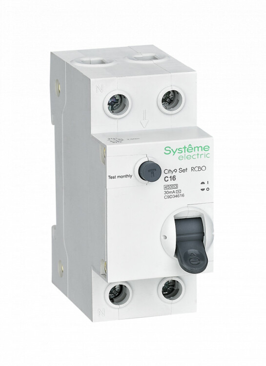 Автоматические выключатели дифференциального тока (АВДТ) серии City9 Set Systeme Electric,1P+N, номинальный ток 16 А, характеристика С, Icn = 4.5 кА, ток утечки 30 мА, тип АС. АВДТ применяется в электрических сетях напряжением 230В. Предназначен для защиты сети от перегрузок, людей от поражения электрическим током и токов короткого замыкания. Уставка по току утечки 30 мА обеспечивает гарантированную защиту людей при прямом прикосновении. Кнопка тест обеспечивает проверку работоспособности аппарата. Крепление на DIN-рейку шириной 35 мм. Безопасные клеммы (ранее Schneider Electric EZ9D34616).