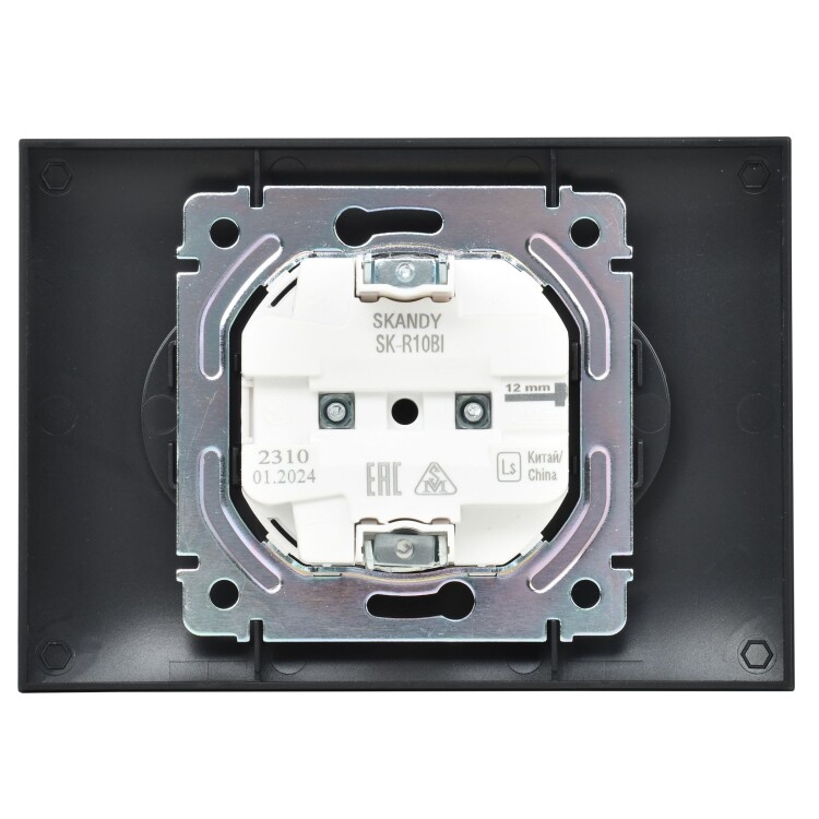 Сканди черный розетка скрытая 2-мест IP20