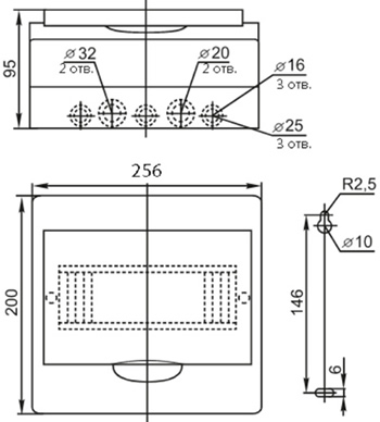 | Наличие шин N, PE | 2 шины (по 5 отверстий) |