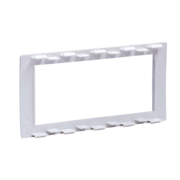 Рамка универсальная 4-модульная для ЭУИ. Назначение: монтаж ЭУИ серий ЭУИ «Вива» (Viva) и тип оразмера 45×45 мм в пластиковые короба серии «In-liner Front», алюминиевые короба и колонны «Aero», лючки и напольные башенки BUS. Характеристики: материал — АБС-пластик; универсальная − устанавливается поверх каркасов: F0000M, F0000MB, F0000A, F0000L; 2-модульная рамка устанавливается поверх одного 2-модульного каркаса; 4-модульная рамка − поверх двух 2-модульных каркасов; 6-модульная рамка − поверх трёх 2-модульных каркасов. Цвет: Белый