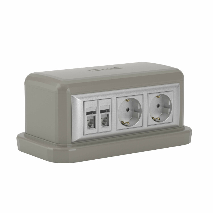 Напольная двухсторонняя башенка BUS. Назначение: организация рабочего места в открытом интерьере, под столами, трибунами и т. д. Подходят для монтажа ЭУИ с 2 сторон, по 6 модулей, монтажа ЭУИ серий «Avanti», ЭУИ «Вива» (Viva) и «45×45 мм» в соответствующих каркасах. Комплект поставки: основание − 1 шт., стойка − 1 шт., крышка − 1 шт., саморезы для монтажа стойки к основанию базы — 4 шт., внутренняя центральная перегородка − 1 шт., рамка на 6 модулей − 2 шт., заглушка сплошная на 6 модулей (накладка для декора неиспользуемого проёма башенки) − 1 шт. Дополнительно необходимо заказать: каркасы под ЭУИ в зависимоси от серии (ЭУИ «Вива» (Viva) и «45×45 мм») или рамку-суппорт («Avanti»). Цвет — серый