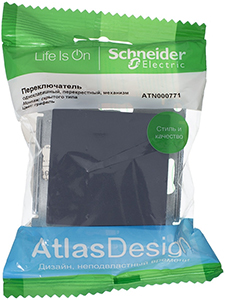 Переключатель одноклавишный перекрестный Schneider Electric ATN000771 AtlasDesign (10 АХ, IP20) скрытой установки, грифель