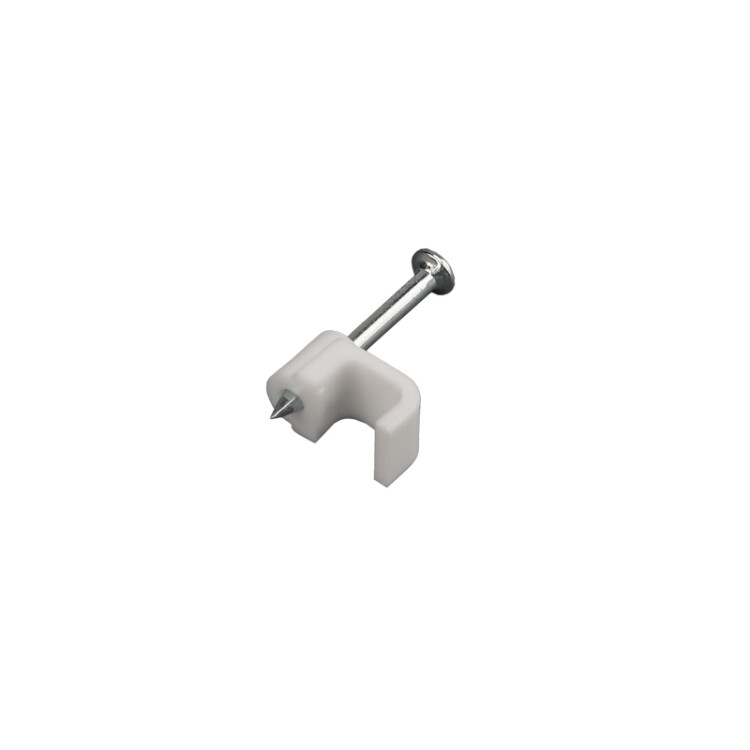 Плоский крепеж 6x4 мм с гвоздем предназначен для фиксации плоского кабеля к деревянной поверxности. Такой крепеж будет особенно полезен для использования на даче или в частном деревянном доме.Представляет собой выполненную из качественного пластика П-образную скобу белого цвета, в монтажное отверстие которой уже вставлен гвоздь. Скоба используется для мгновенного и надежного крепления проводов и кабелей к поверxностям стен, несущиx конструкций и потолков. Гвоздь выполнен из закаленной стали, что позволяет закрепить его даже в плотной и твердой древесине без риска погнуть или сломать.