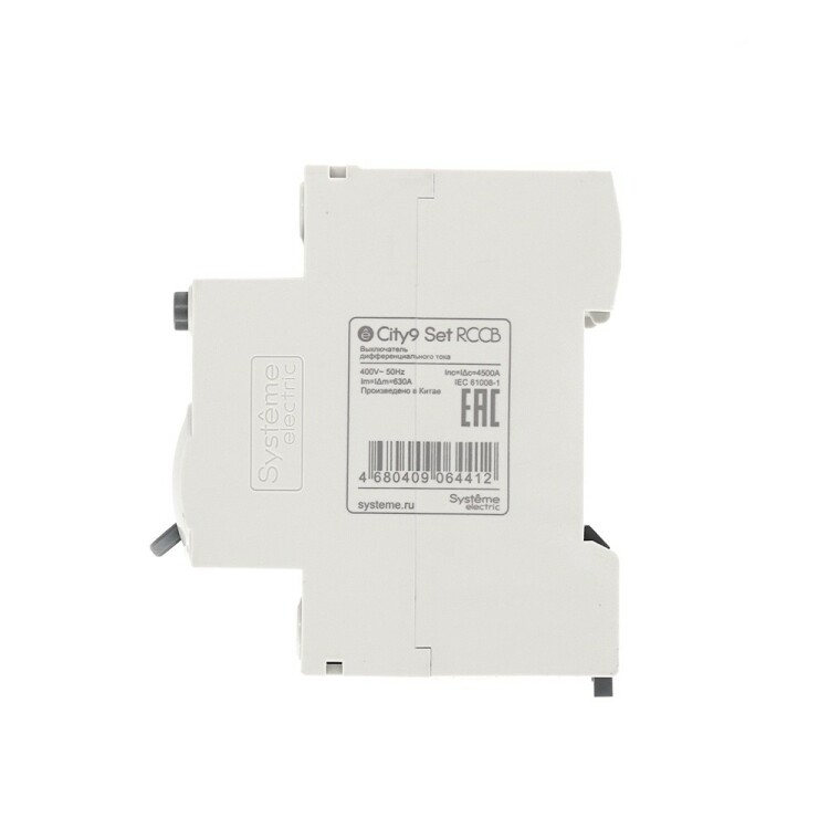 Выключатель дифференциального тока (ВДТ) или устройство защитного отключения (УЗО) серии City9 Set Systeme Electric, 4-полюсный, номинальный ток 63А, ток утечки 300 мА, тип АС, электромеханический. Применяется в электрических сетях напряжением 400В. Уставка по току утечки 300 мА обеспечивает гарантированную защиту людей при прямом и косвенном прикосновении. Кнопка тест обеспечивает проверку работоспособности аппарата. Крепление на DIN-рейку шириной 35 мм. Подключение сверху и снизу. Безопасные клеммы (ранее Schneider Electric Easy9 EZ9R644633).