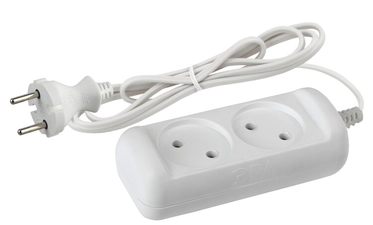 Компактный бытовой удлинитель ЭРА UX-2-1,5m на 2 розетки, без заземления. Рассчитан на одновременное подключение к розетке до двух маломощных электроприборов, максимальная нагрузка - 6 A/ 1300 Вт. Длина шнура - 1,5 метра. Надёжный двухжильный провод ШВВП. Корпус изготовлен из прочного негорючего полипропилена с защищающими от возгорания антипиренами. Закруглённые углы, брендирование на вилке и корпусе, базовый белый цвет этот удлинитель отличается аккуратным приятным дизайном.