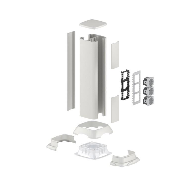 Колонны «Aero» применяются для организации рабочих мест в зонах с ограниченным пространством и в помещениях, где рабочие места расположены далеко от стен. В них устанавливаются ЭУИ серий «Avanti», ЭУИ «Вива» (Viva), «Brava». Внутреннее пространство колонны разделяется алюминиевой перегородкой на две или три секции при помощи пластикового разделителя (код 01415). Стойка высотой 0,5 м устанавливается на пол и может вмещать до 24 модулей. Комплект поставки: стойка колонны алюминиевая — 1 шт., крышка колонны алюминиевая — 2 шт., заглушка торцевая верхняя пластиковая — 1 шт., база на пол металлическая — 1 шт., накладка лицевая на базу пластиковая — 1 шт., накладка внутренняя на базу пластиковая — 2 шт., винт — 4 шт. Каркасы и рамки для ЭУИ заказываются дополнительно. Цвет — светло-серебристый металлик.
