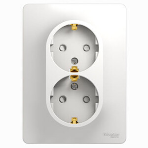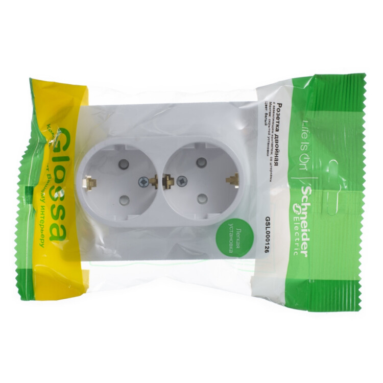 Розетка двухместная Schneider Electric GSL000126 Glossa (16 А, в сборе) с заземлением и защитными шторками, белый