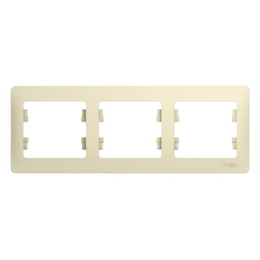 Рамка Systeme Electric (ранее Schneider Electric) серии Glossa (цвет бежевый) трёхместная. Устанавливается в горизонтальном положении. Выполнена из материала PС+ASA, стойкого к УФ-излучению и появлению царапин. Позволяет гармонично вписать электроустановочное изделие в интерьер помещения. (ранее Schneider Electric ЭУИ UNICA, ЭУИ UNICA NEW MGU2.006.25, NU200644)