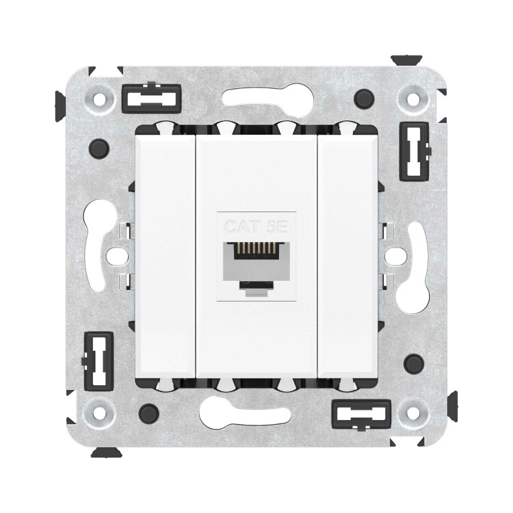 Компью терная розетка без шторки используется для подключения компьютерной техники и соединения с патч-панелью. Компьютерная розетка предназначена для скрытого монтажа в стену, поставляется в комплекте с суппортом. Розетка RJ-45 категории 5e – это наиболее популярная на сегодняшний день модель. Она позволяет организовать сеть с частотой 125 МГц и скоростью до 1000 Мбит/с. Материал – металл, термопласт. Пластиковые детали устройства имеют оттенок "Белое облако" – это чистый белый оттенок, сочетающийся с любыми цветами палитры "Avanti".