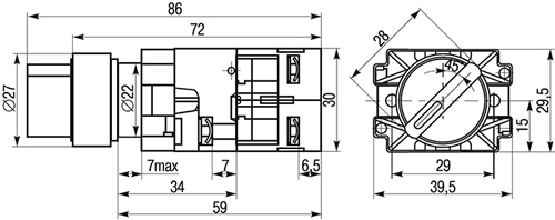 Переключатель LAY5-BK2365 с металлическим основанием на два фиксированных положения O-I предназначен для переключения отдельных электрических цепей переменного тока напряжением до 600 В частотой 50 Гц или постоянного тока напряжением до 400 В.