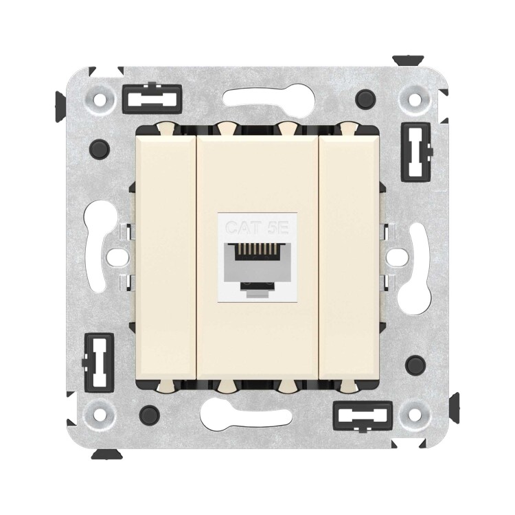 Компью терная розетка без шторки используется для подключения компьютерной техники и соединения с патч-панелью. Компьютерная розетка предназначена для скрытого монтажа в стену, поставляется в комплекте с суппортом. Розетка RJ-45 категории 5e – это наиболее популярная на сегодняшний день модель. Она позволяет организовать сеть с частотой 125 МГц и скоростью до 1000 Мбит/с. Материал – металл, термопласт. Пластиковые детали устройства имеют оттенок "Ванильная дымка".