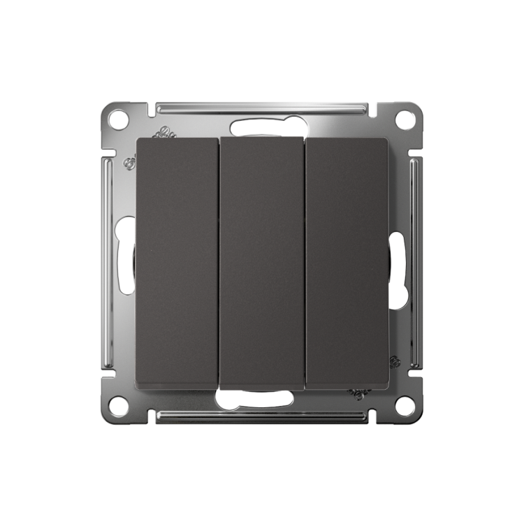 Механизм Systeme Electric (ранее Schneider Electric) серии AtlasDesign в цвете базальт выключателя 3-клавишного подходит дл я сетей 250 В, на ток 10 А. Трёхклавишный выключатель позволяет управлять тремя источниками света из одной точки. Лицевые детали из качественного ABS-пластика, устойчивого к царапинам и УФ-излучению. Усиленные прямые монтажные лапки для лучшей фиксации механизма в монтажной коробке.