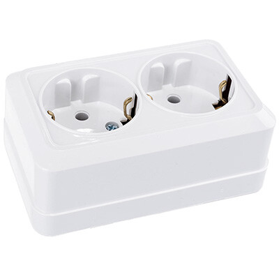 Розетка двухместная IN HOME 7128 Bolleto (16 А, IP20) открытой установки, с заземлением, белый