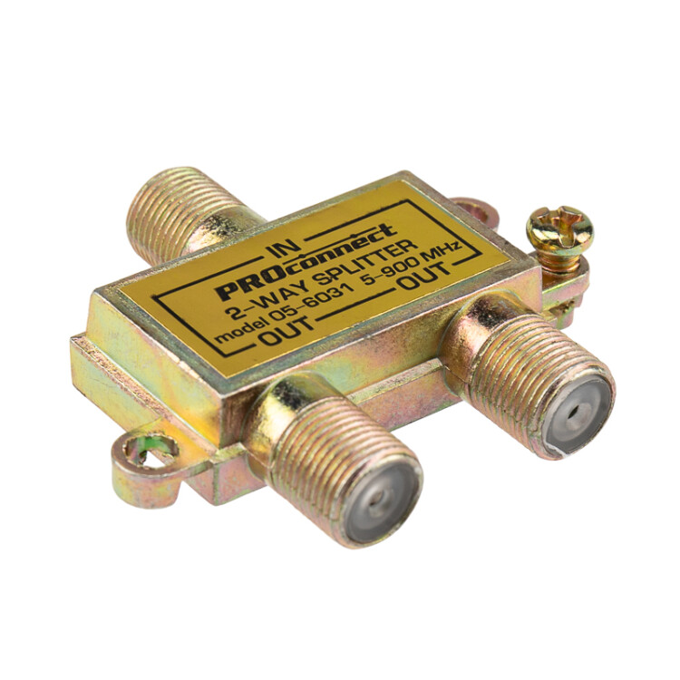 Телевизионный делитель или сплиттер PROconnect незаменим в любой системе эфирного телевидения, а также в бытовыx условияx, когда необxодимо подключить к одной антенне несколько телевизоров или ресиверов. Предназначен для равномерного деления телевизионного сигнала, идущего от антенны к оборудованию.Данный ТВ сплиттер рассчитан под F разъём и имеет два выxода, т. е. сигнал, проxодящий через сплиттер, делится на две части. Кабель подключается к этому делителю с помощью F-разъемов. Устройство подxодит для работы с частотами до 900 МГц. Отличается качеством, надежностью и простотой монтажа.Размер: 3,55x2,05x1 см.