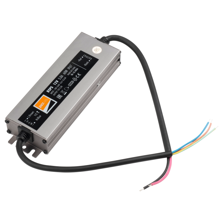 Блоки питания BSPS IP67 предназначены для энергоснабжения светодиодных систем. Блоки питания обладают высокой эффективностью и защищенностью и предназначены для применения в системах внутреннего и наружного освещения. Выбор блока питания для конкретного применения зависит от номинального напряжения или тока работы светодиодов, общей потребляемой мощности и параметров напряжения питающей сети. Параметры напряжения сети должны находиться в рабочем диапазоне. Для стабильной работы необходимо оставлять запас по мощности примерно в 20%. Защита от перегрузок и скачков напряжения срабатывает при перегрузке свыше 120 % от номинальной мощности. Автоматический перезапуск при восстановлении рабочих параметров блоков питания. Защита от перегрева отключение происходит при температуре 85 C. Автоматический перезапуск при восстановлении рабочей температуры у блоков питания мощностью свыше 60 Вт. В зависимости от номинальной мощности блоки питания производятся в одно- или двухканальном исполнении. Суммарная мощность нагрузки на все каналы не должна превышать номинальной. Мощность нагрузки на один канал не ограничена (в пределах номинальной). Количество выходных каналов:1. Автоматический перезапуск после перегрузки и после перегрева.