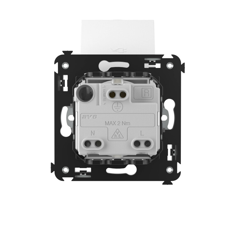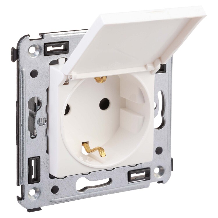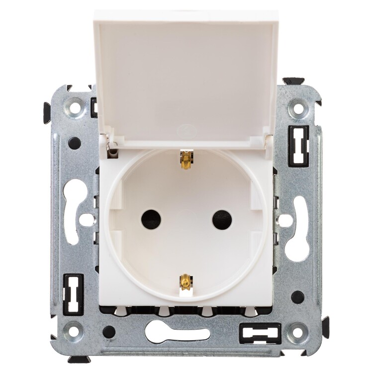 Розетка одноместная DKC 4400013 Avanti (16 А, IP20) скрытой установки, с заземлением, с защитными шторками, с крышкой, белое облако