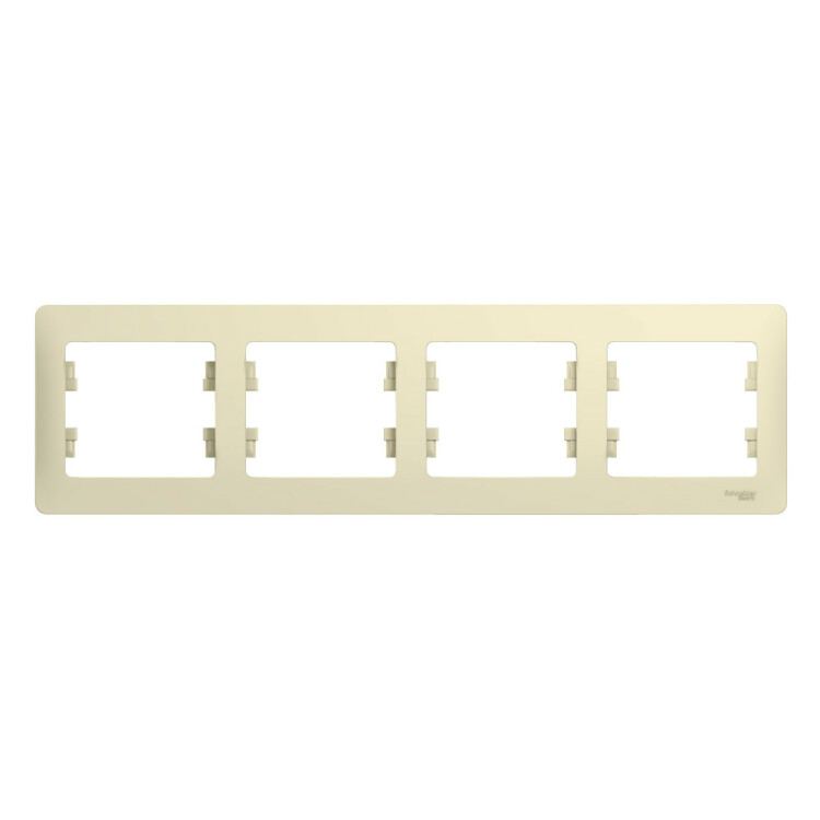 Рамка Systeme Electric (ранее Schneider Electric) серии Glossa (цвет бежевый) четырёхместная. Устанавливается в горизонтальном положении. Выполнена из материала PС+ASA, стойкого к УФ-излучению и появлению царапин. Позволяет гармонично вписать электроустановочное изделие в интерьер помещения. (ранее Schneider Electric ЭУИ UNICA, ЭУИ UNICA NEW MGU2.008.25, NU200844)