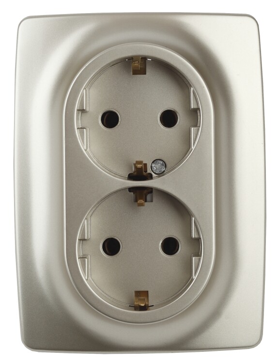 Розетка двойная с заземлением серии Эра 12 скрытой установки механизм цвет шампань 12-2106-04. Номинальные характеристики 16А 250В . Сделана из поликарбоната, оснащёна автоматическими клеммами для быстрй и надёжной фиксации жил кабеля в механиме. Парные клеммы обеспечивают соединение шлейфом. Монтаж в подрозетник производится и на лапки, и на винты. Рамки приобретаются отдельно. Рамки Эра 12: 1 пост 12-5001-хх, 2 поста 12-5002-хх, 3 поста 12-5003-хх, 4 поста 12-5004-хх, 5 постов 12-5005-хх. Рамки Эра 12 Сатин: 1 пост 12-5101-хх, 2 поста 12-5102-хх, 3 поста 12-5103-хх, 4 поста 12-5104-хх, 5 постов - 12-5105-хх (хх - код цвета: 01-белый, 02-слоновая кость, 03-алюминий, 04-шампань, 05-антрацит, 06-чёрный, 07-ольха(белёный дуб-сатин), 08-вишня, 09-дуб, 10-венге, 11-сосна, 21-жёлтый, 22-оранжевый, 23-красный, 24-охра, 25-бордо, 26-лайм, 27-зелёный, 28-голубой, 29-синий).