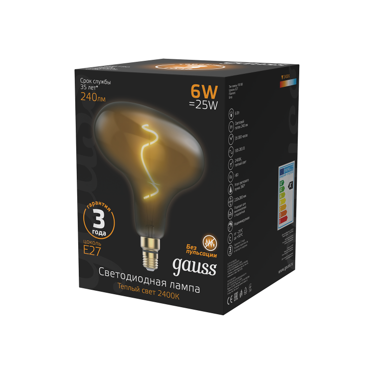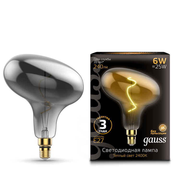 Лампа декор свд Е27 6Вт 2400К 240лм FD180 серая филамент Gauss Flexible