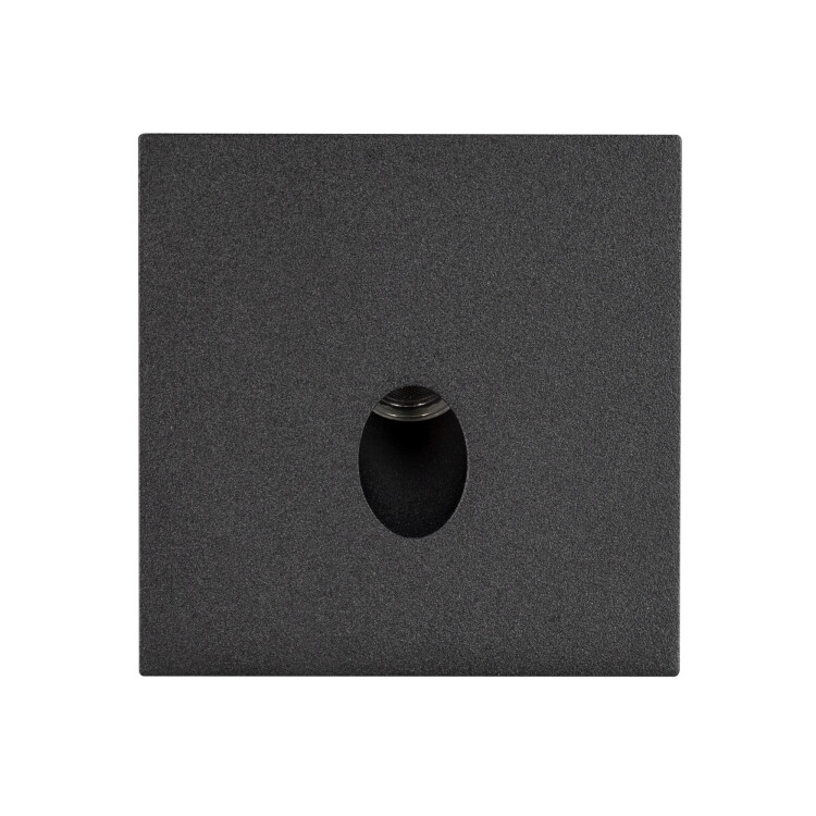 Светодиодный встраиваемый квадратный светильник для стен, лестниц, 3Вт. Цвет ТЕПЛЫЙ 3000К, световой поток 120лм, угол 30°, CRI>80. Влагозащищенный корпус IP65, чёрный алюминий. Питание AC230V, мощность 3Вт. Размеры LxWxH 70x70x97мм (закладная часть Ø62x95мм).